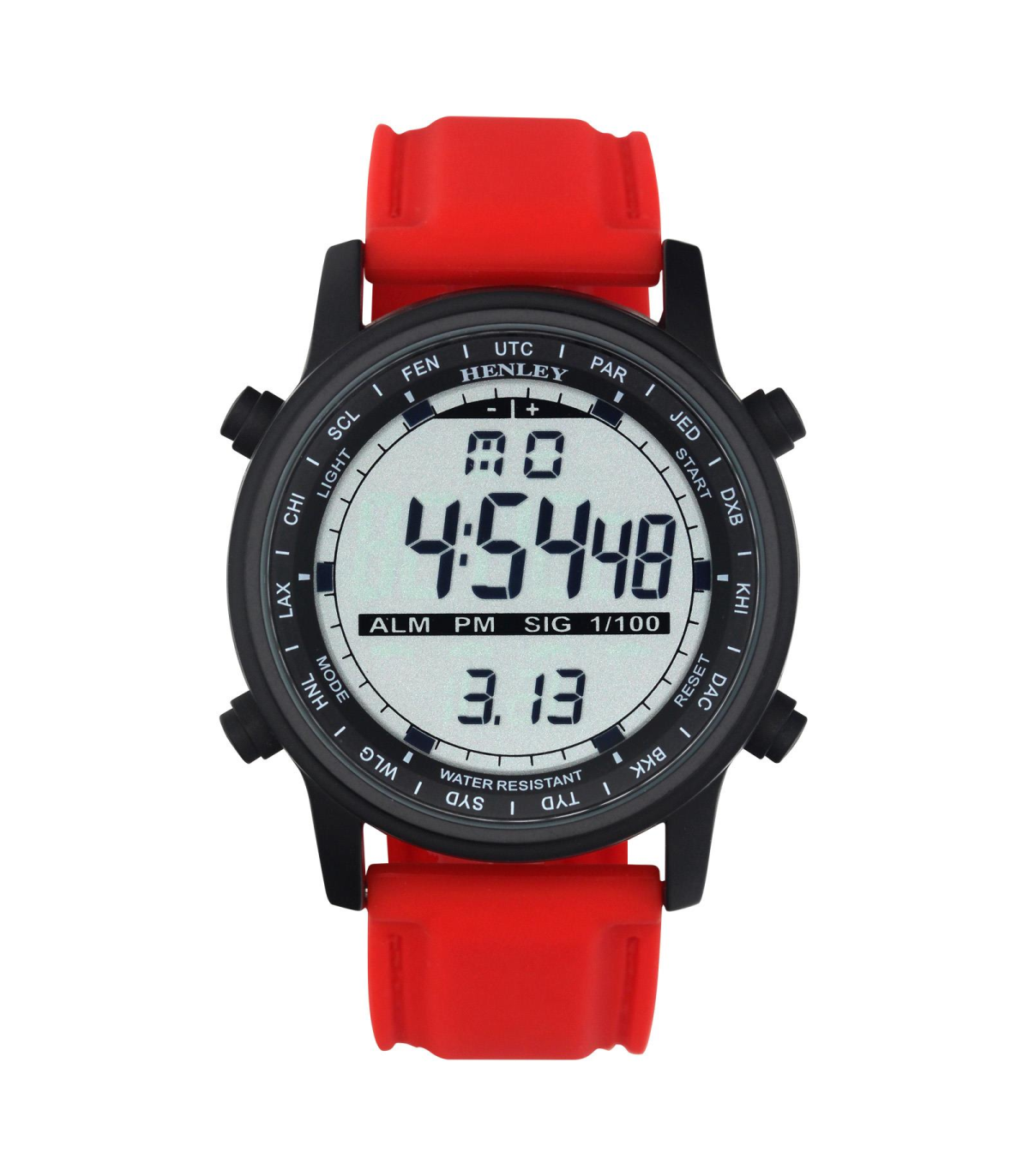 Henley Mens Digital Black Dial Rubber Strap Watch Red HDG038.10