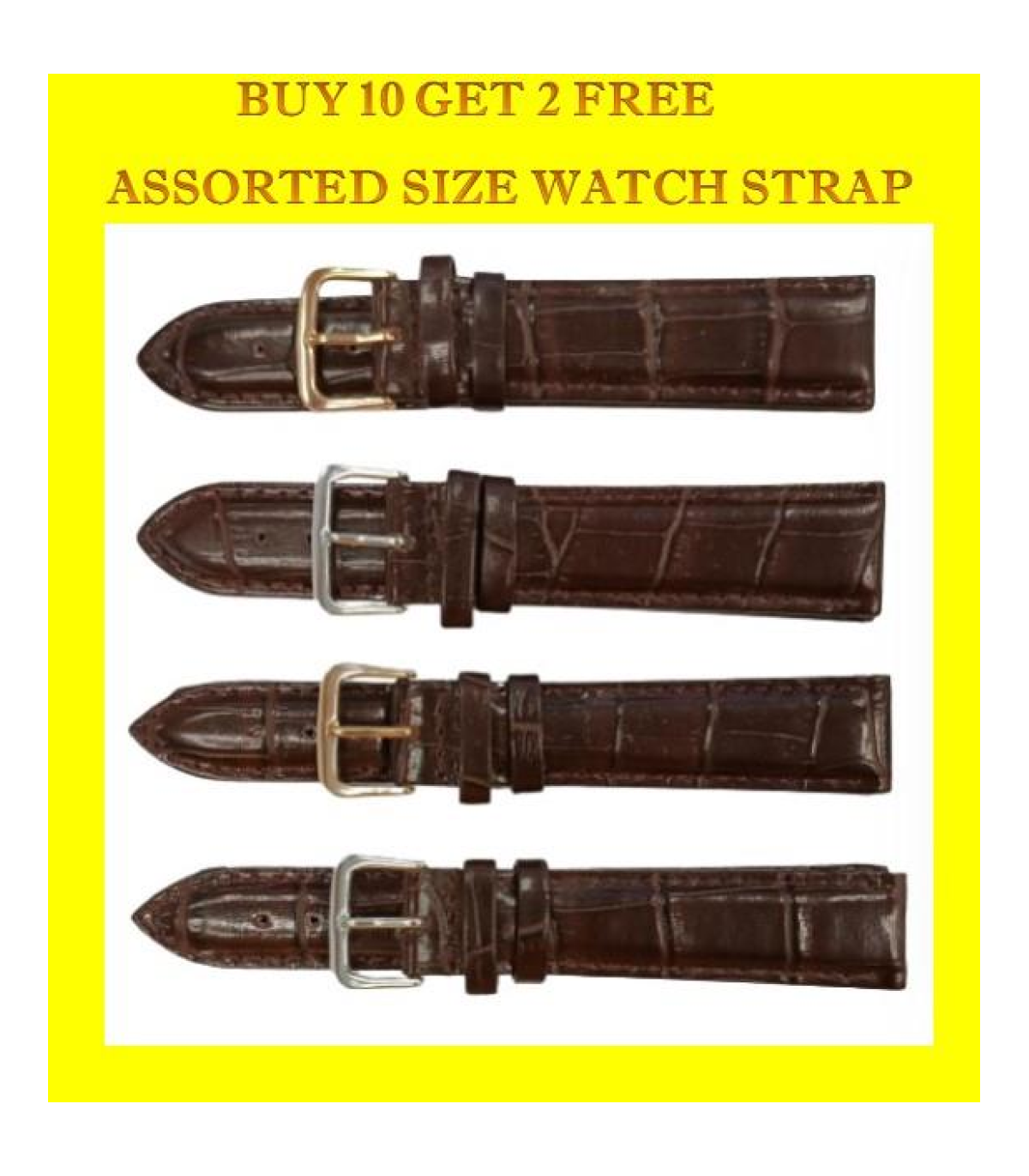 Classic Dark Brown Padded Crocodile Leather WATCH STRAP BUY 10 GET 2 FREE ASSORTED SIZE 18mm-20MM