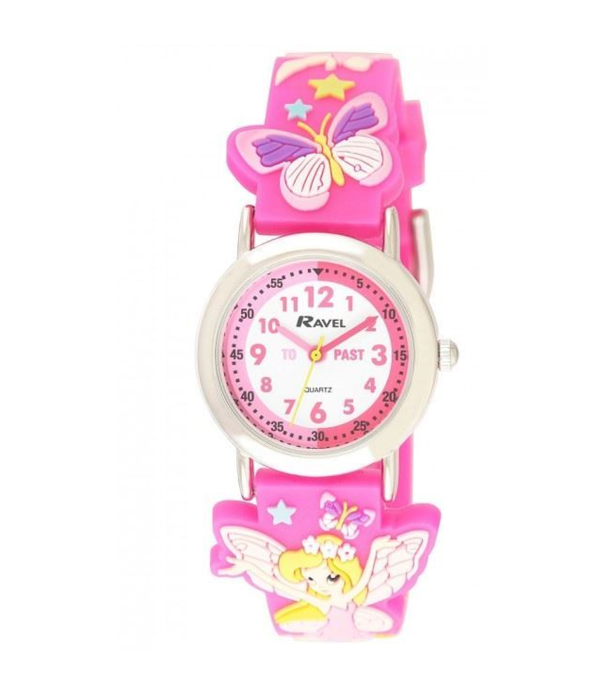 The Ravel Rascal Time Teacher range is the perfect watch to help teach children to tell the time with. Made using a soft silicon strap with high quality 3D childrens designs and a colour co-ordinated time teacher dial this watch will help demonstrate the difference between "to" and "past." It has a numbered minute track with a full 1-12 dial and coloured hour and minute hands to make learning to tell the time as easy as possible.