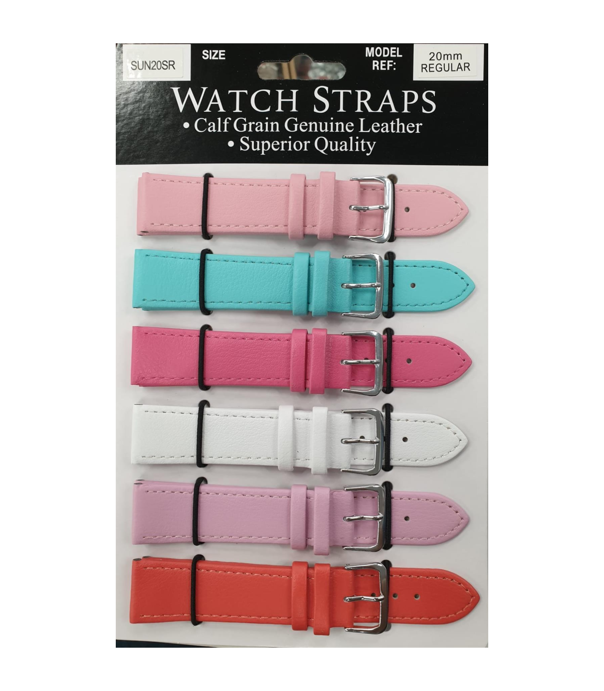 SUNSR Sun Mixed Colour Calf Leather Watch Straps Regular card of 6 - Silver Buckle