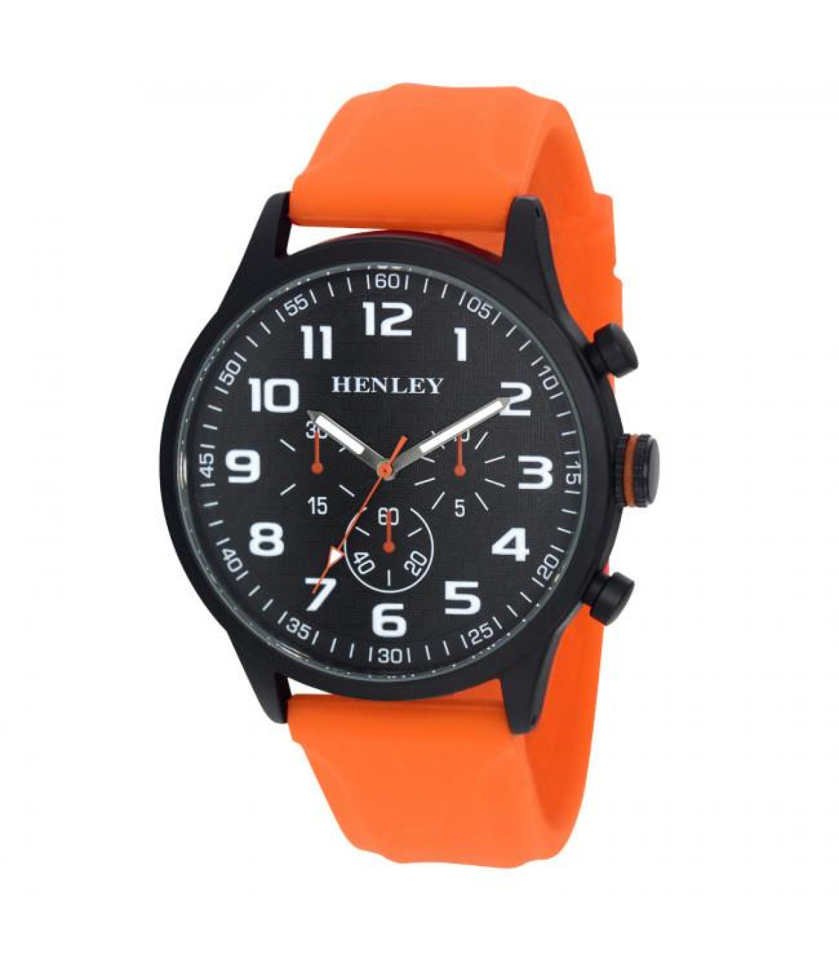 Henley Mens Black Sports Silicone Watch Orange H02224.8