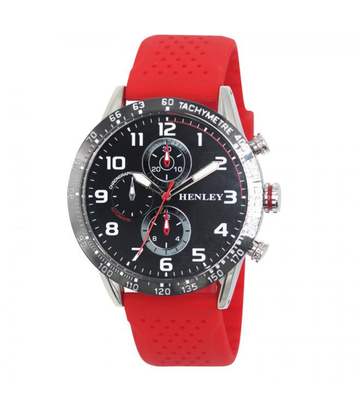 Henley Mens Large Polished Sports Silicone Watch Red H02225.10