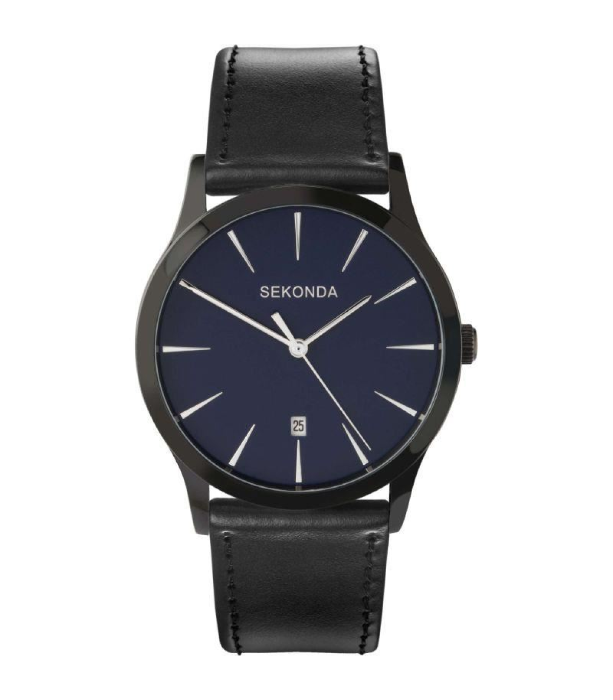 SEKONDA Gents Quartz Watch with Blue Dial Analogue Display Black PU Strap 3536