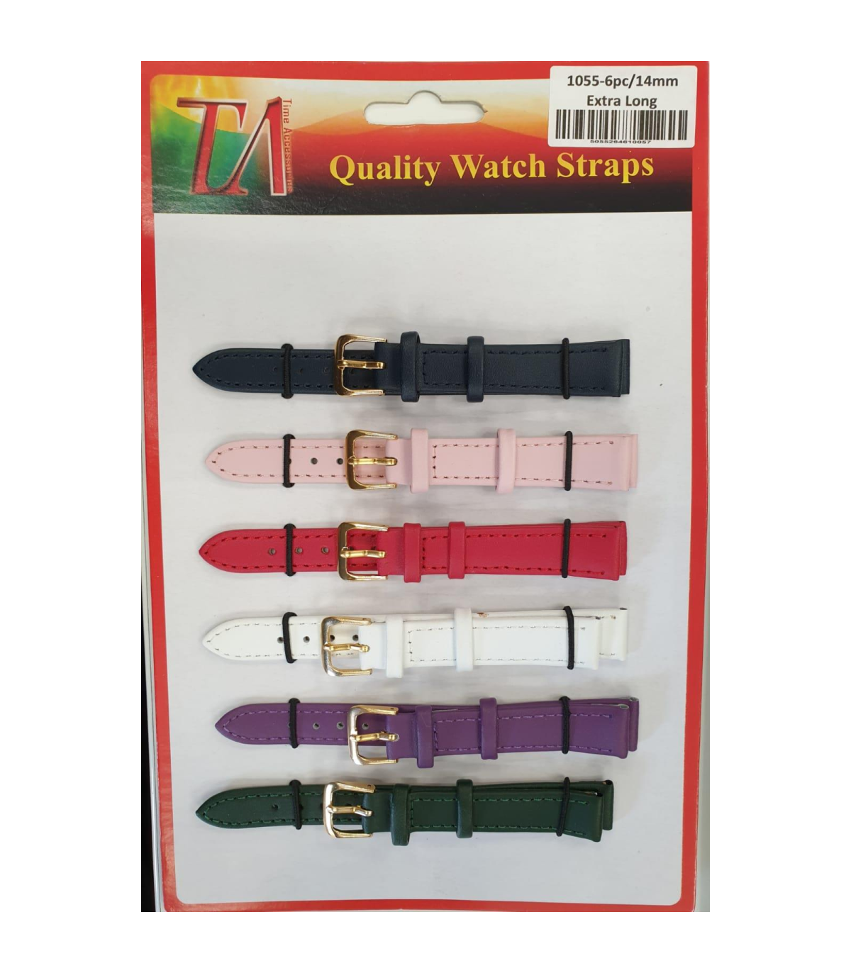 Leather Extra Long Watch Straps Pk6 Assorted colours 1055C.18mm