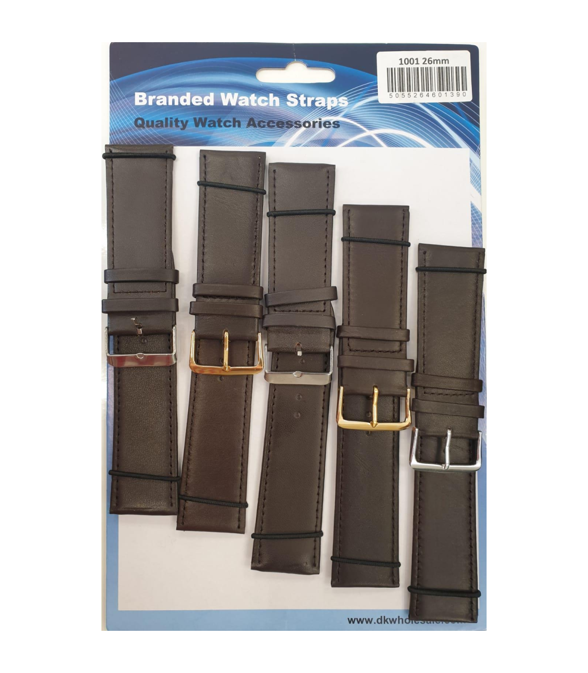 Brown Leather Watch Straps Pk5 size 26mm 1001BR