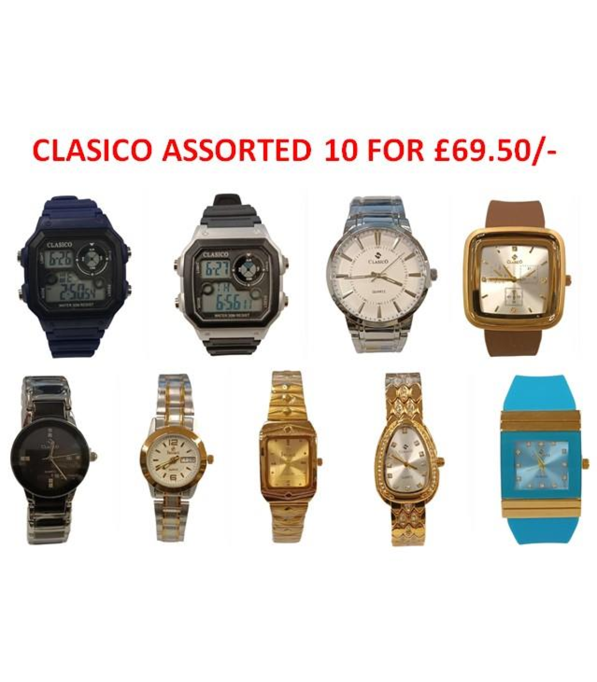 Clasico Mens & Ladies Assorted Fashion 10 Watches Model & Colour's Varied UNBOXED