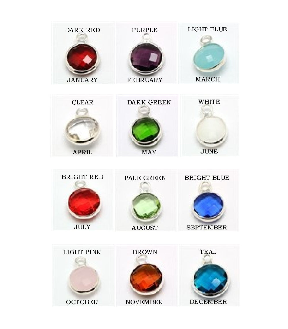 • Birthstone Charm: 8mm Faceted coloured glass in a silver plated mount.