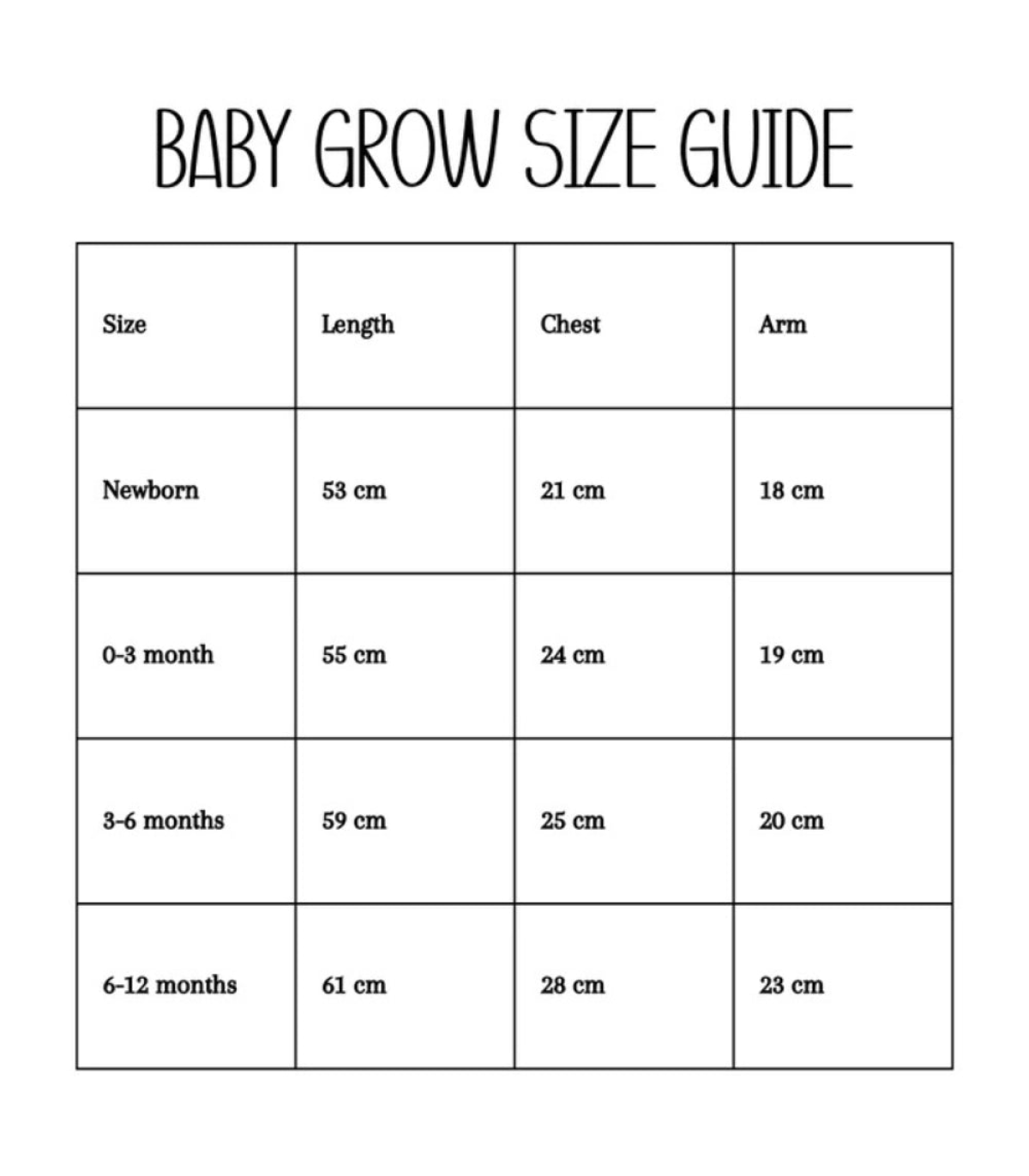 - UK Kids Sizes - Please see size chart image New Born, 0-3 Months, 6-12 Months