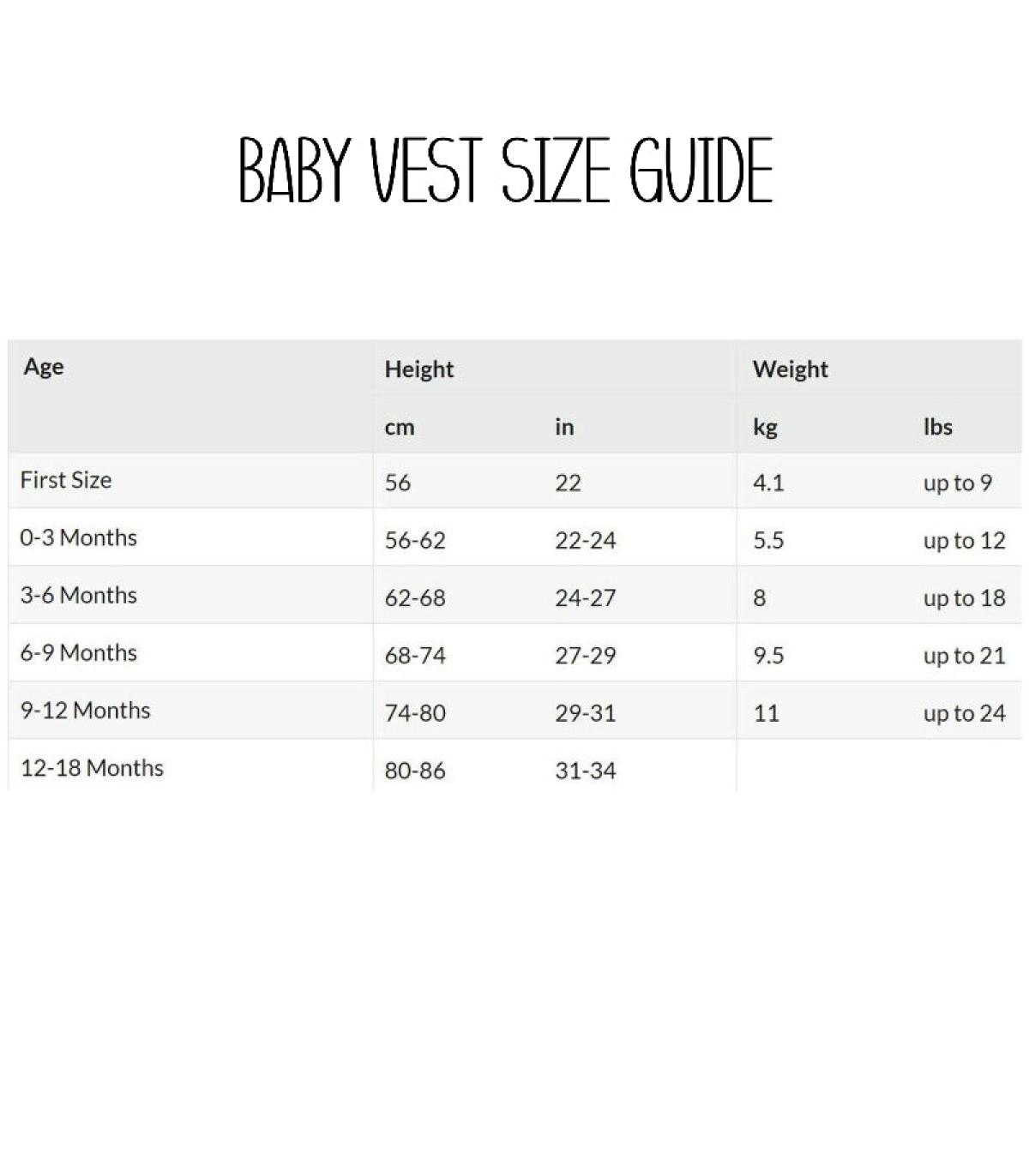 • UK Kids Sizes - Please see size chart image New Born, 0-3 Months, 6-12 Months