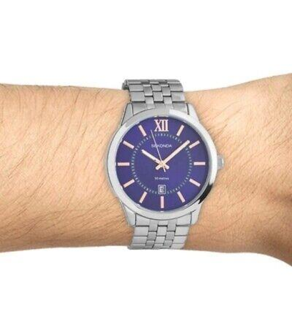 Sekonda Mens Dated Round Blue Dial Stainless Steel Bracelet Watch 1197