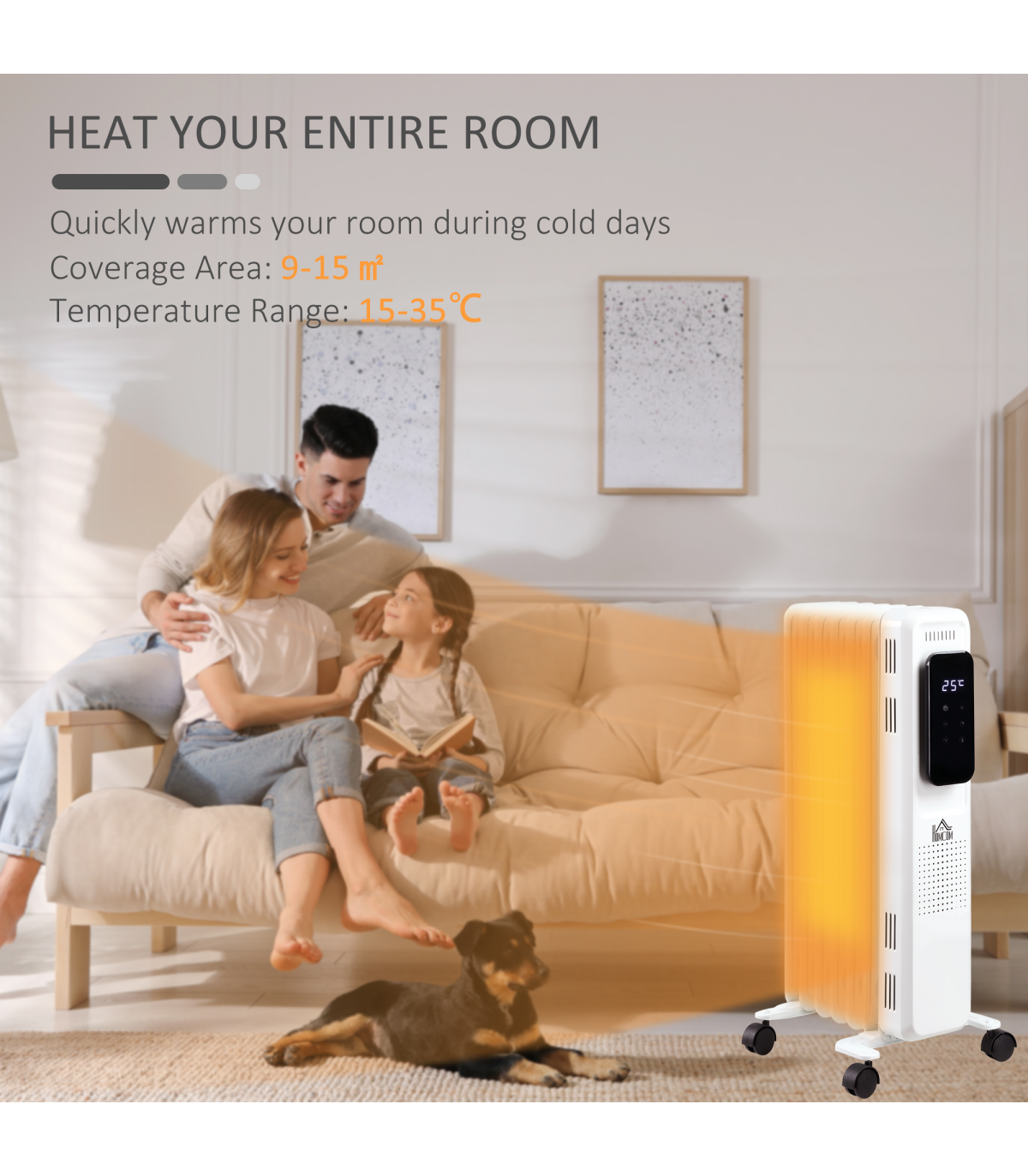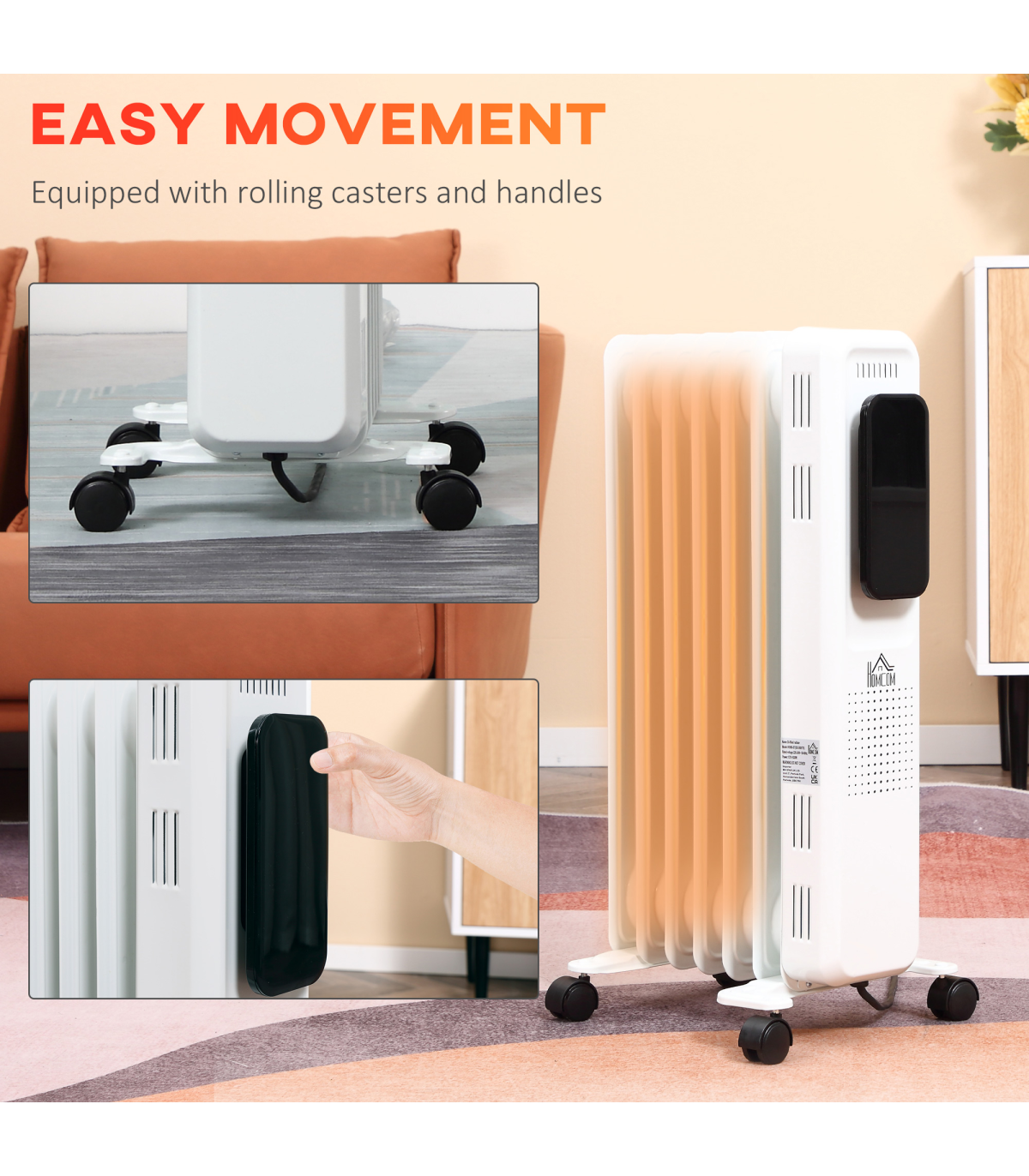 When the weather starts to turn icy, you will need this oil-filled radiator heater. Our HOMCOM oil-filled radiator with 7 heating pipes is perfect for keeping your bedroom, living room, home or office warm. Plus with three power settings, low, medium and high, you can find your preference temperature with total ease. The 360 degree wheels at bottom for easy movement. Don't let your fingers and toes freeze and trust in our oil heater to deliver warm heat from any room in the house.